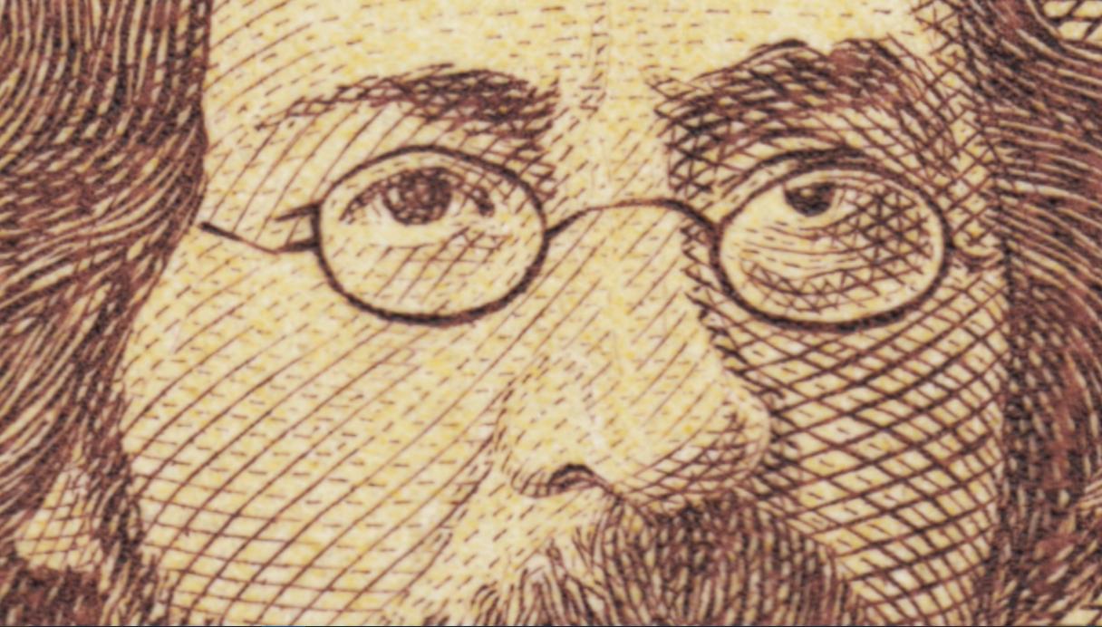 En páginas anteriores hemos mostrado cómo Nefe y Toth creaban la sombra de las patillas de las gafas. ¿No tenemos derecho a ver cómo lo hizo Slania? Retrato del escritor de las Islas Feroe Brú Heðin. A quien no conocemos de nada, no habíamos oído nunca su nombre y aún menos leído nada suyo. Pero es que de momento sólo nos interesan sus gafas, y si acaso esa verruguita de la frente, ya veremos más adelante...