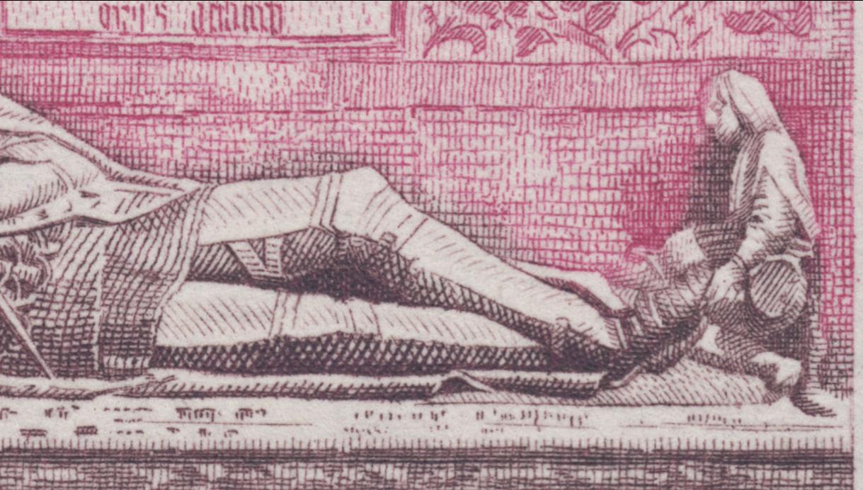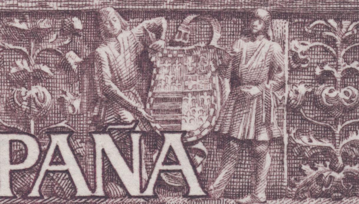 El sepulcro de Martín Vázquez de Arce, en una de las capillas de la catedral de Sigüenza, ha inspirado grandes palabras a no pocos escritores españoles, sin duda fascinados por lo que la figura representa: valentía y meditación. Ardor guerrero y lectura pausada. También inspiró a José Luis Sánchez Toda uno de sus últimos grabados, para este gran sello emitido en 1968. Gran trabajo del maestro, armonioso y sereno, espléndido grabado.