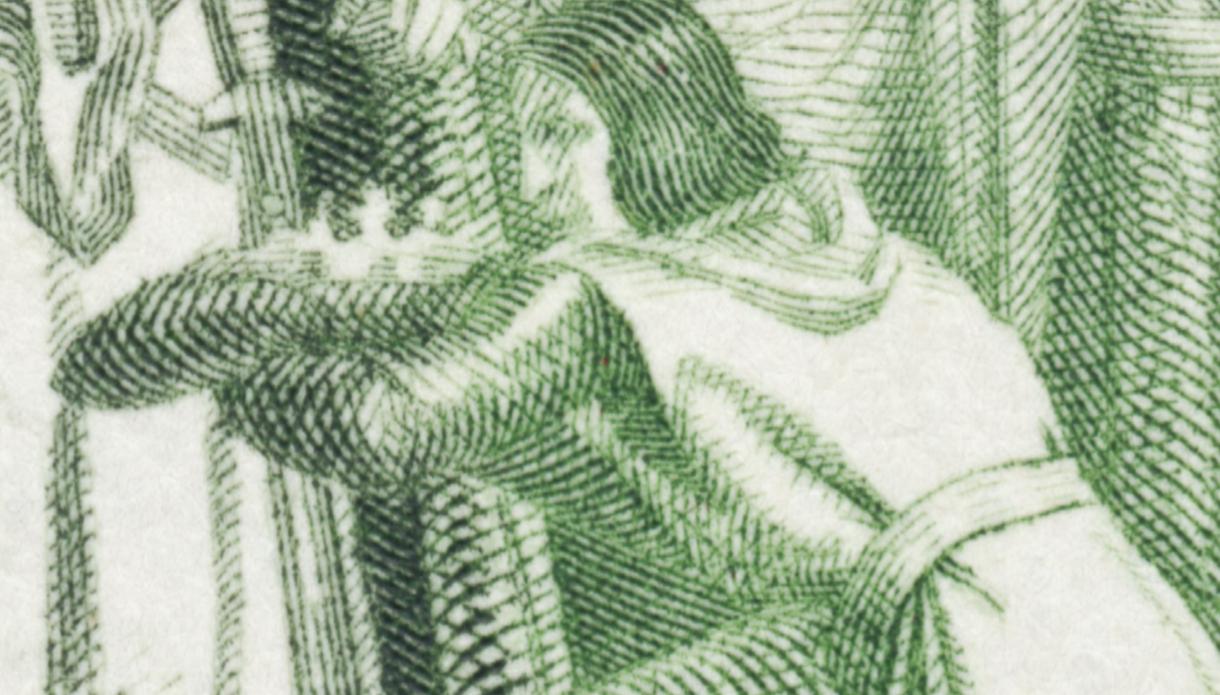Y quien la hizo princesa oficial fue Rainiero III, quizá la personalidad más grabada por Slania. Ya diseccionamos uno páginas atrás, último trabajo del gran maestro. Ahora analizamos este sello de Mónaco de 1974, grabado a partir de una fotografía de Howell Conant: