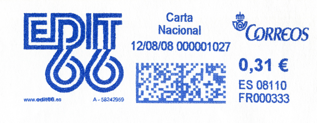 Para terminar el repaso a las máquinas Frama, la impronta de la FR000333, de Edit66, figura recogida en San Filatelio con el CP 08400.