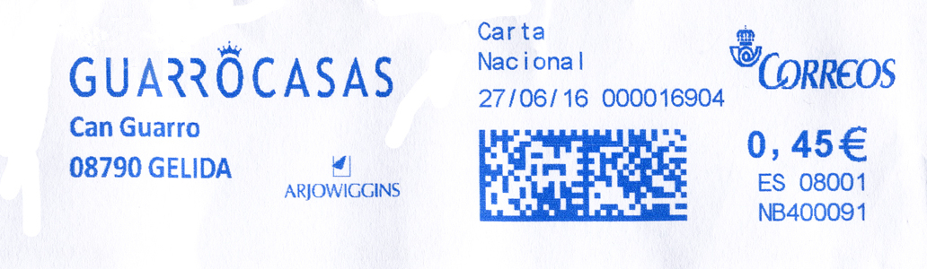 otro de Correos.NB400347.Está tan falto de tinta que no se vé el código.Yo diría (con alguna duda)porque me lo han mandado de Lléida que el código es 25007.