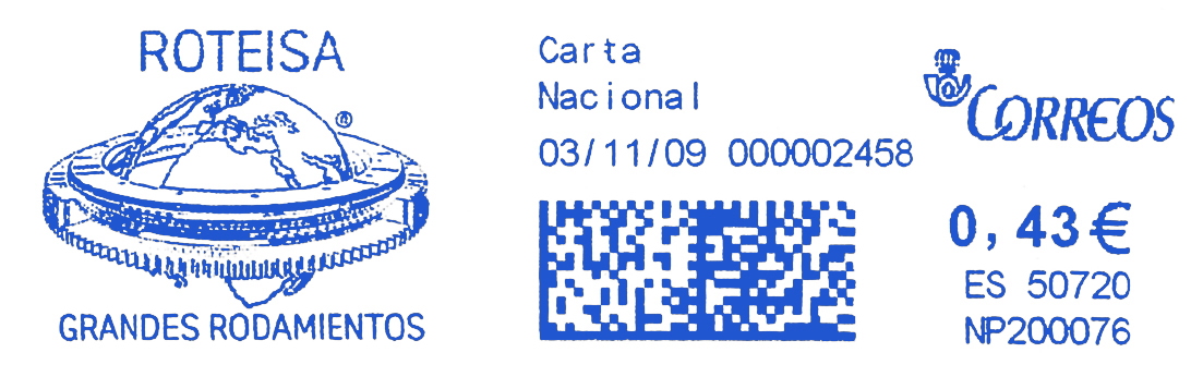Impronta de la máquina NP200076, de Roteisa, que mejora la recogida hasta ahora en San Filatelio.