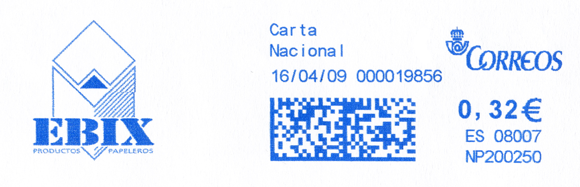 De la máquina NP200250, propiedad de la empresa Ebix, figura en San Filatelio una impronta muda.