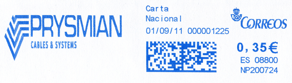 Impronta de la máquina NP200724, de la empresa Prysmian. Hasta ahora, solo figuraba recogida en San Filatelio una impronta muda de esta máquina.