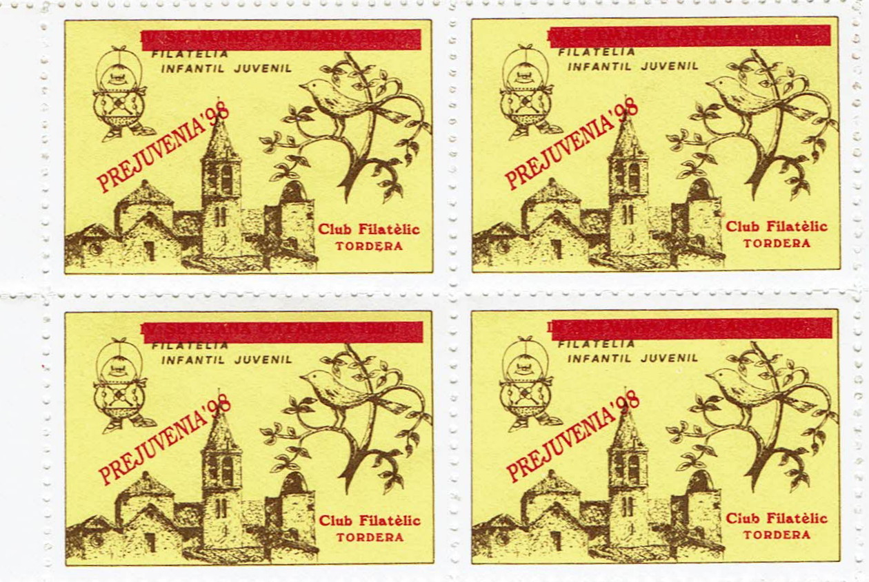 Respondiendo a Barth,,, si la teniamos controlada, aunque no se si la hemos subido. Se empleó parte de la gran cantidad de viñetas que editaron en 1980, para reutilizarlas con esa sobrecarga con ocasión de la PREJUVENIA98. Los pliegos son de 30 efectos, seis horizontal x cinco vertical.