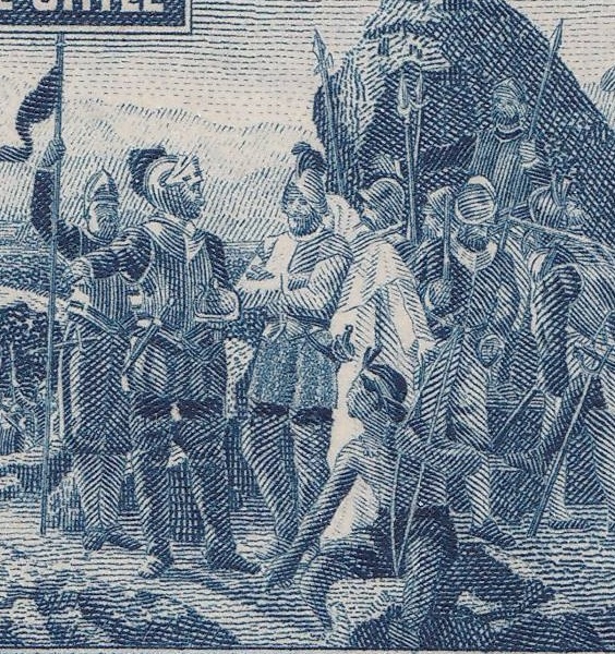 Postdata. Por lo que he podido colegir buscando por la red información del billete, el grabado fue realizado por Moreno Benavente a mitad de los años treinta. Impreso por vez primera en un billete de 1940, se imprimiría después en el reverso de otros billetes posteriores.