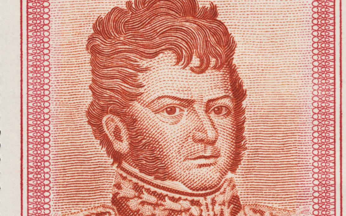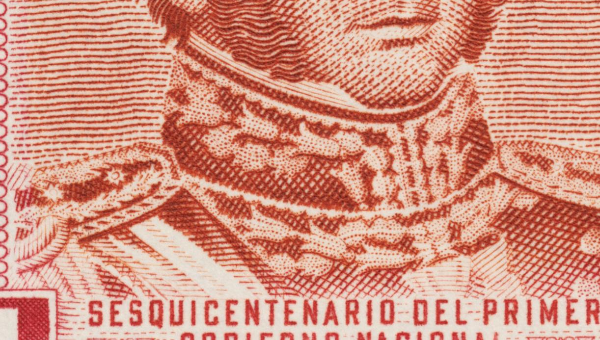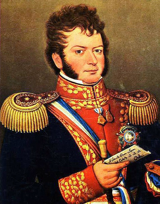 Sello emitido por Chile en 1945, inspirado en el retrato de Bernardo O'Higgins de José Gil de Castro.