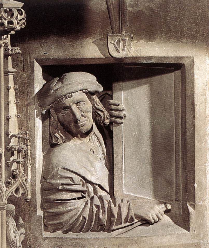 El primero de ellos fue impreso en 1946 y representa a El mirón, la extraña y bellísima estatua del púlpito gótico de la fastuosa Catedral de Viena. Ese hombre que se asoma desde una ventana con un compás en la mano no es otro que Anton Pilgram (1460-1516), el escultor de los cuatro Padres de la Iglesia del púlpito, que se autorretrató con el cincel al pie de su obra. El sello que recrea esta estatua, elegante y delicado, constituye un homenaje más de Ranzoni a otro de sus iguales.