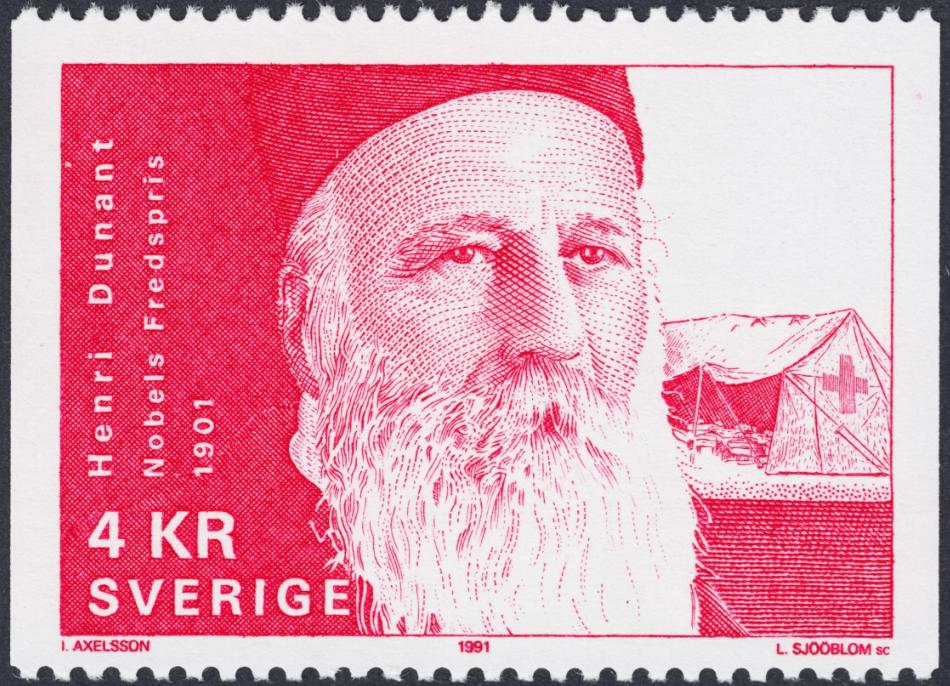 Añado también imagen de un Dunant muy notable (Suecia, 1991), el del grabador Lars Sjööblom (1956-), del que en las primeras páginas mostramos un trabajo reciente: el sello de Ingrid Bergman, tan sencillo en su diseño, grabado e impresión como bello en su conjunto (*).