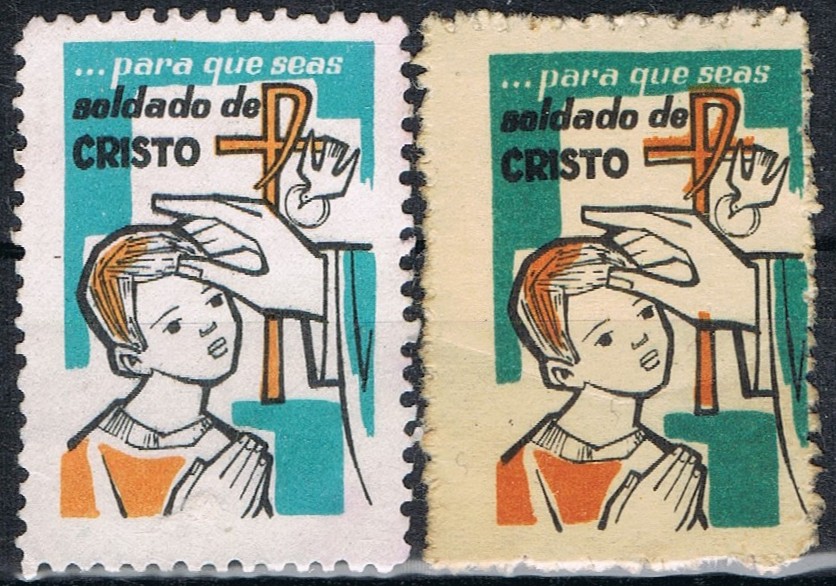 Insistiendo con las viñetas religiosas, las cuales fueron distribuidas por el Seminario Conciliar, decir que las de la HB llevaban un facial en el dorso de 10 céntimos y la viñeta única en pliego de 1 peseta.