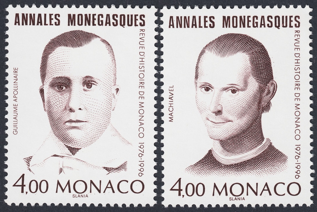 Completan la serie los retratos de Montaigne y Maquiavelo, ambos someros y elgantes, una obra de Louis Brea de la Catedral de Mónaco, Saint Nicolas, y un grabado del escritor Guillaume Apollinaire, la talla más liviana de esta emisión excepcional.