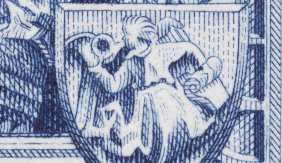 Pero ahora centramos nuestra atención sorprendida y hasta obnubilada en este sello principal, emitido por Saar en 1954. Y es que, aún confiando mucho en el talento de este artista, ¡no deja de sorprendernos esta cima! Talla muy incisiva y cuajada de Munier, enfática y sustancial. ¡Maravillosa, prodigiosa obra de arte!