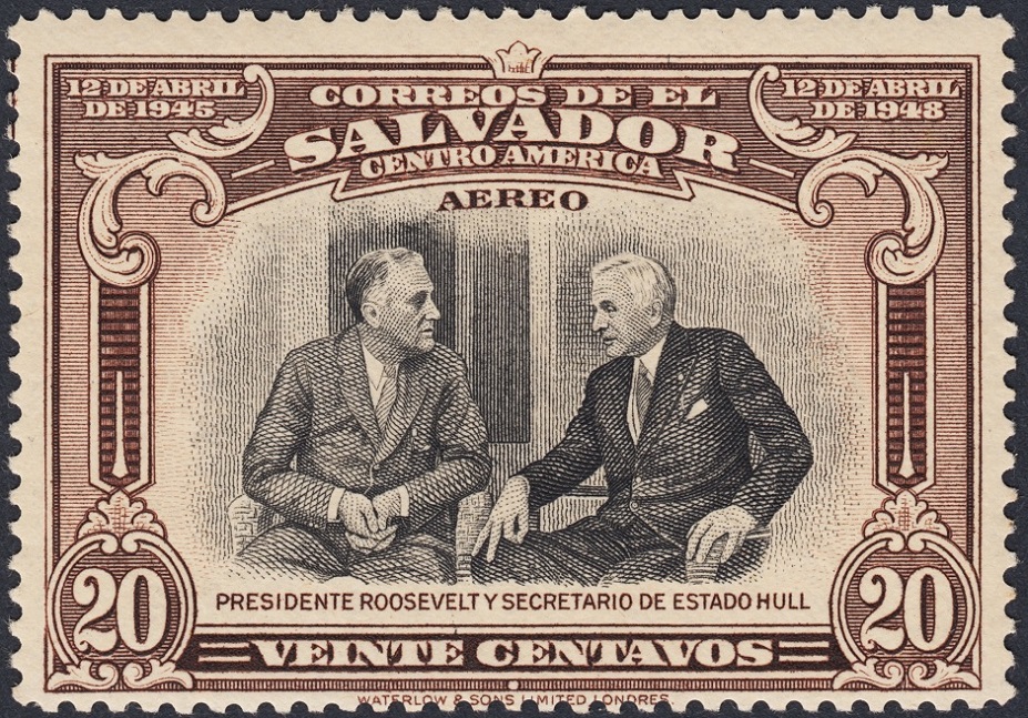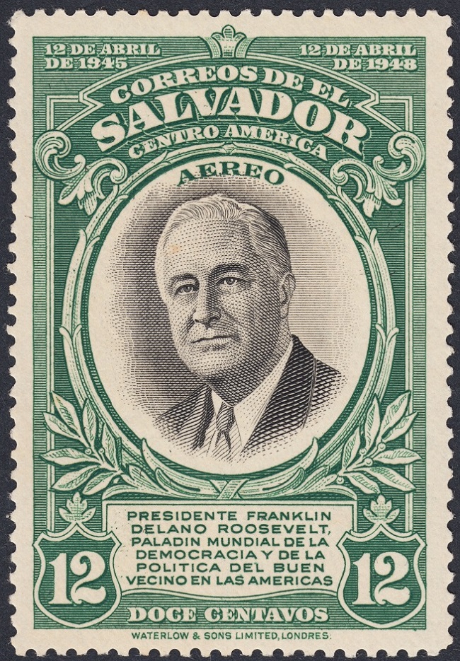 Cambiamos radicalmente de ámbito y de estilo. En las primeras páginas de este Tema (*), mostramos un sello de El Salvador que honraba a uno de los filatelistas más insignes y uno de los presidentes norteamericanos más importantes: Franklin Delano Roosevelt. Era uno de los seis sellos que conforman esta bella serie emitida por El Salvador en 1948. Completamos ahora la serie ofreciendo imágenes de los cinco sellos restantes.