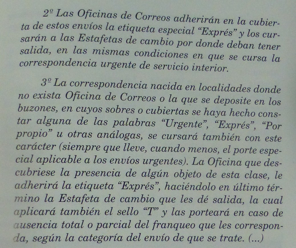 Te copio el articulo 3ºde las instrucciones para el correo urgente de 1.928