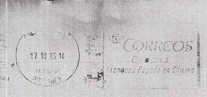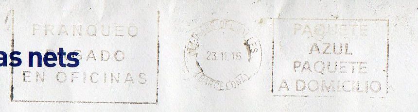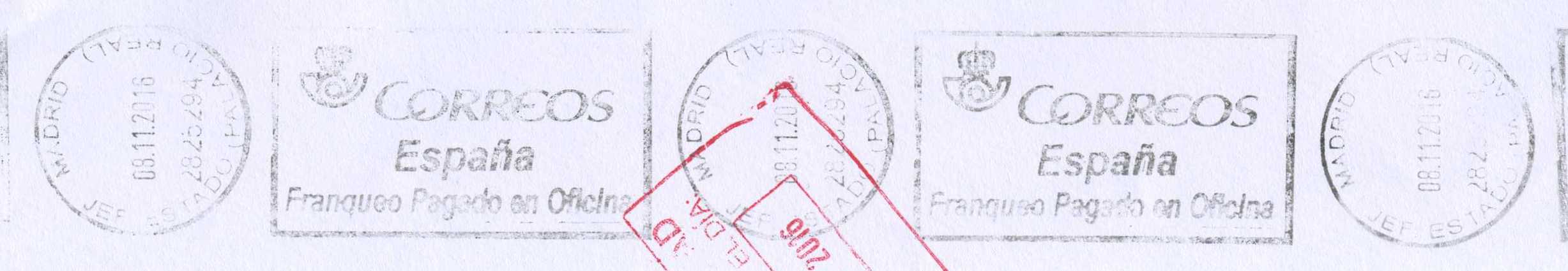 Se ha suprimido el troquel del logotipo de la empresa aunque debiera ser un FPO por el franqueo 000. Maquina 28102 / TAFALLA / NAVARRA / 17-11-16