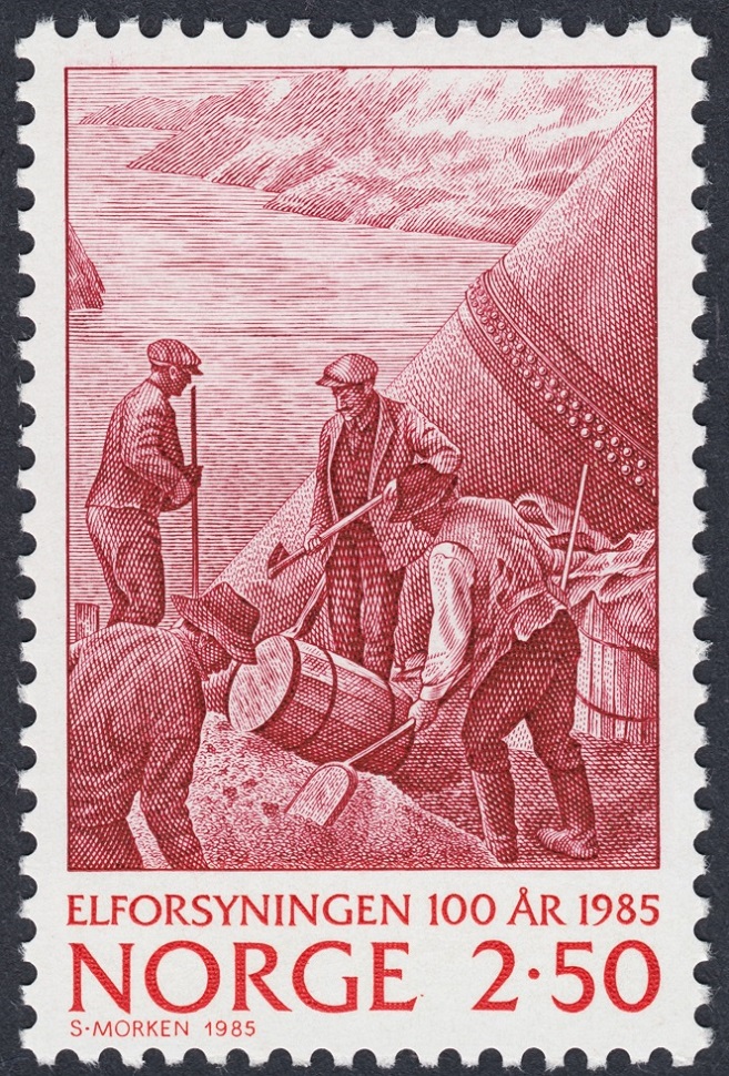 Los dos últimos sellos, emitidos por Noruega en 1985 para celebrar el centenario de la electrificación de este país nórdico, son obras que reflejan de un modo resuelto el estilo impasible de Morken: frialdad en la concepción artística, distancia en la concreción expresiva y técnica depurada para ejecutar con precisión infalible la conjugación equilibrada sobre el acero de estos principios rectores. ¡Magnífico este grabador glacial y severo, inconmovible y genial!