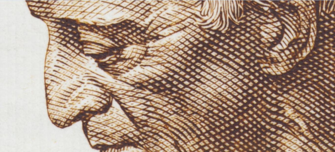 El grabado de Pauline Borghese (Bonaparte), es no menos impresionante: sombreado con delicadeza por Vittorio Nicastro, lo que confiere un relieve inconfundible a la recreación, y tallado con la pureza y la frialdad propias de este artista inconformista y sagaz.
