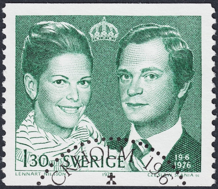 Cerramos esta entrada añadiendo dos Silvias más de Slania, y un grabado de su hija, la Princesa Victoria. De un lado uno de los valores de una de la series básicas de Suecia, emitida entre 1981 y 1984, y después uno de los tres de junio de 1976, el primer sello sueco en el que aparece Silvia y emitido entonces para celebrar su boda con el rey Carlos Gustavo, que aparece, joven y apuesto, a su lado.
