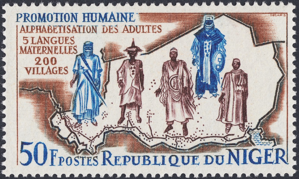 Para un país de África, Níger, imprimió Francia en 1965 la serie que presentamos en esta entrada, dedicada a la promoción humana. Decaris, el artista del acero menos capaz de dotar de vida vulgar a sus criaturas, obligado a exteriorizar con el buril las amputaciones más hirientes de su sensibilidad dolorida y angustiada: la ilusión y la esperanza. ¡Vana aspiración! E ingenua. Decaris, atormentado y descreído, no podía encontrar otra concreción natural de su estilo descorazonado sino en el símbolo, residencia última de la obra grande y misteriosa de este artista incomparable. ¡Decaris!