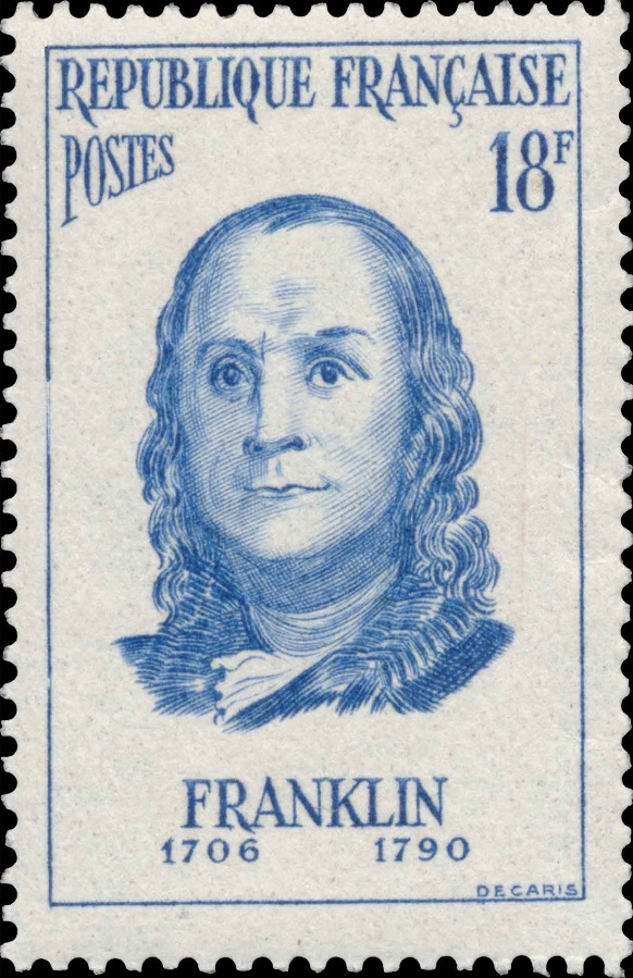 Las tres últimas imágenes corresponden todas a retratos emitidos por Francia en 1956, uno de ellos, el de Franklin, formando parte de una serie de seis sellos en la que participaron distintos diseñadores y grabadores, entre ellos Henry Cheffer y Jean Pheulpin. A ese Franklin tan despistado y cándido, añadimos los retratos de dos personalidades militares: el mariscal Franchet d'Espèrey y el coronel Emile Driant, que murió, precisamente, en la batalla de Verdún que homenajea el sello citado anteriormente. Son estos dos últimos sellos manifestaciones drásticas del estilo más distorsionador y temperamental de Decaris: manipulaciones virulentas y decididas de las facciones y aún del espíritu de los hombres retratados, a los que este artista traslada, mediante pinceladas nerviosas y rápidas sobre el acero, su inquietud temerosa y apesadumbrada.
