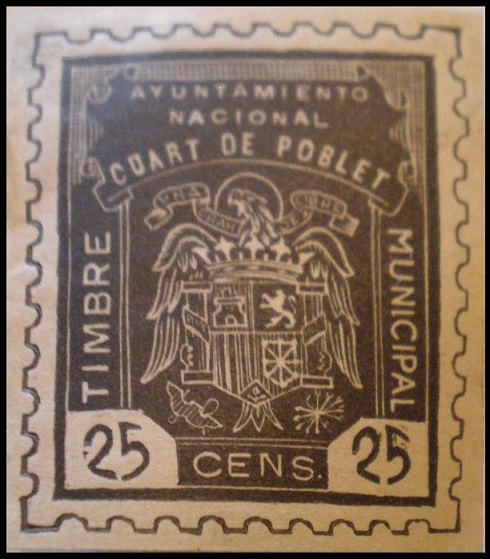 Pues la descripción del vendedor "QUART DE POBLET (VALENCIA). PRUEBA IMPRENTA NEGRO SELLO 25 CENS. TIMBRE MUNICIPAL LOCAL AYUNTAMIENTO"Jose escribió:Luís, el color es castaño, no negro, y del mismo tipo que el de color lila de 5ptas que muestro al principio de esta página.LPerez escribió:Jose, éste es una prueba en negro, por lo que estaremos atentos a que aparezca "de pata negra"Jose escribió:Uno que se me había pasado de Quart de Poblet: