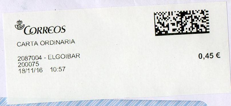 2087004-ELGOIBAR / CARTA ORDINARIA / 18-11-16