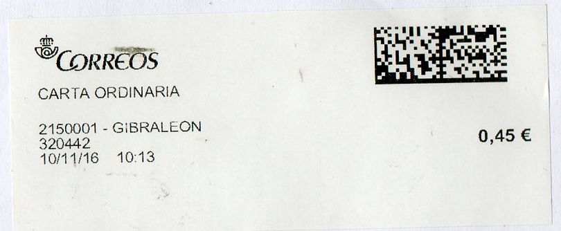 2150001-GIBRALEON / CARTA ORDINARIA / 10-11-16