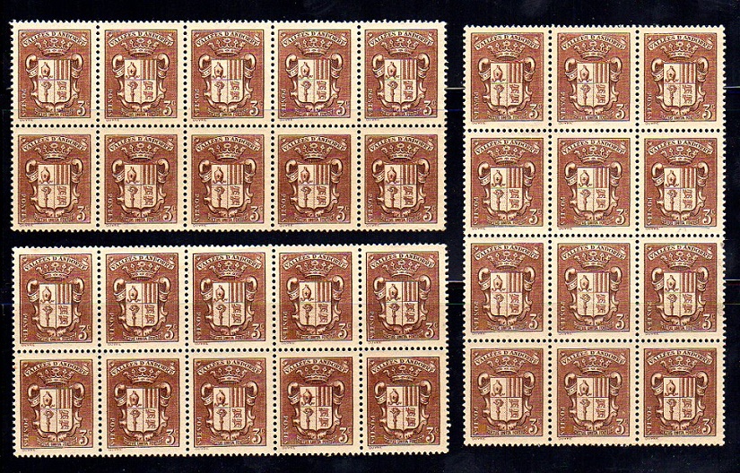 Bloque de 12 sellos y 2 bloques de 10 de 3 c. Valles D`Andorre