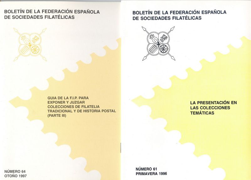2 boletines: Guia FIP para exponer y juzgar colecciones de filatelia tradiciona y de historia postal (parte III) y La presentación en las colecciones tematicas