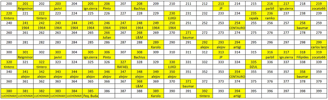 artigi escribió:Le ruego me anote los números terminados en 94 que no hayan sido adjudicados.