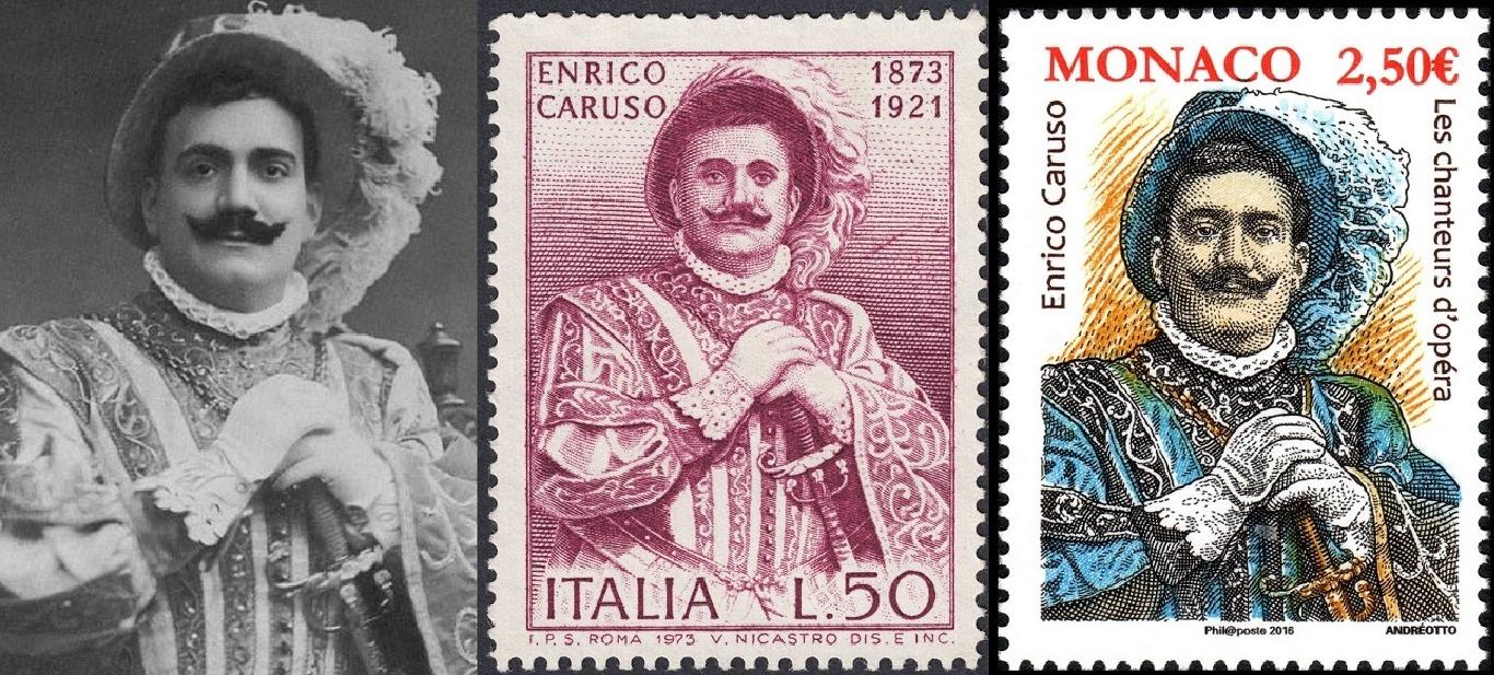 A propósito de haber nombrado un par de veces últimamente a Claude Andréotto (París, 9-2-1949), sin duda uno de los mejores grabadores vivos y alumno aventajado de, precisamente, René Cottet, abrimos esta entrada para el esparcimiento visual inmediato y elemental. El sello de Caruso es una de sus obras más recientes, emitido por Mónaco este 2016 y que sin duda recrea la misma fotografía que grabó Vittorio Nicastro para el sello emitido por Italia en 1973. De este sello hablamos y muy bien en su momento (*); ahora lo situamos junto al de Andréotto para simplemente ver de un modo instantáneo el ayer y el hoy de dos buenas impresiones calcográficas y de dos grabados en talla dulce de excepción. Es cierto que, conforme el foco se acerca, el de Nicastro eleva su entidad artística, pero no es menos verdad que, a simple vista, el sello actual nos seduce tanto o más que la emisión de 1973.