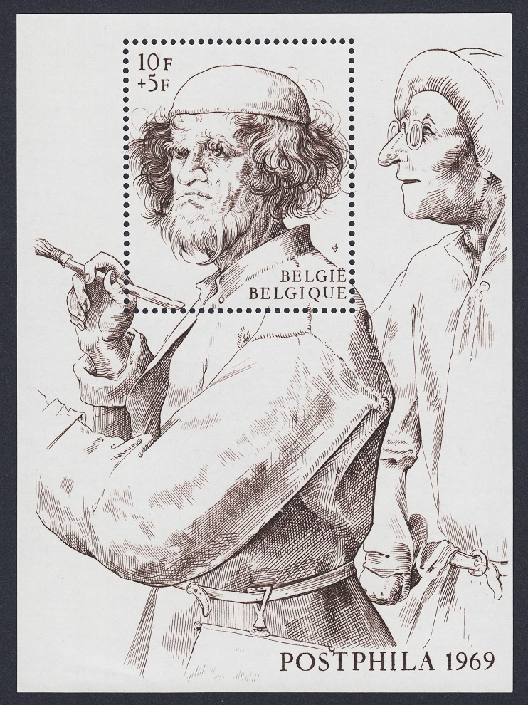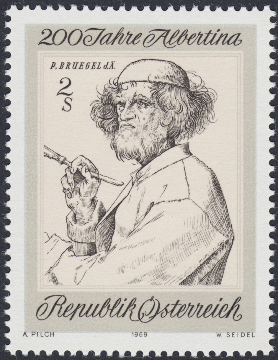 De la emisión belga, el diseñador y grabador fue Jean De Vos. De la austríaca, Wolfgang Seidel, cada vez más presente por estas páginas, es quien profundiza en el acero a Brueghel. Profundiza Seidel y también lo hace De Vos: este verbo, profundizar, es el más justo y convincente para recalcar la consumación filatélica de ambos grabadores. Y es que lo que hubiera podido ser no más que una reproducción sencilla y escueta, dado además el trazo de grabado del dibujo original, que aconseja el simple y sencillo duplicado, acaba por ser una loable y maravillosa recreación artística, desdoblada en sendos grabados y sellos magníficos: los de Seidel y De Vos. Dos meditaciones penetrantes y dos indagaciones ambiciosas. Una constatación simultánea y rotunda del estatuto artístico de la Filatelia.