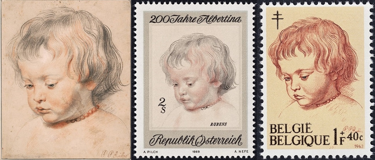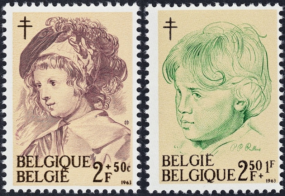 Respecto a los cinco sellos iguales en formato de la serie, están dedicados a retratos de niños dibujados por Rubens. La mayoría de ellos se considera que eran sus propios hijos, excepto la niña del sello de 50+10c, uno de los dos de De Vos, que era la hija de Balthazar Gerbier.