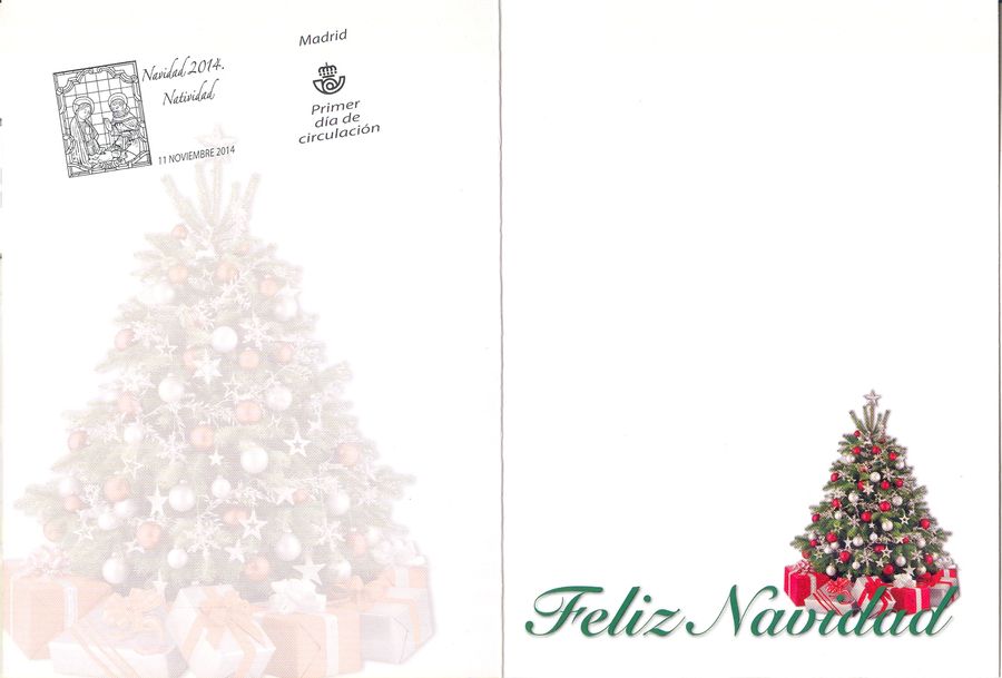 La primera de las tarjetas hace referencia al sello emitido para la Navidad 2014 con franqueo de Tarifa B. Sello 4923 de Edifil y 5395 de FESOFI.