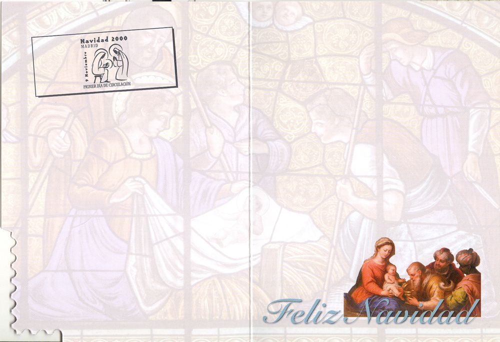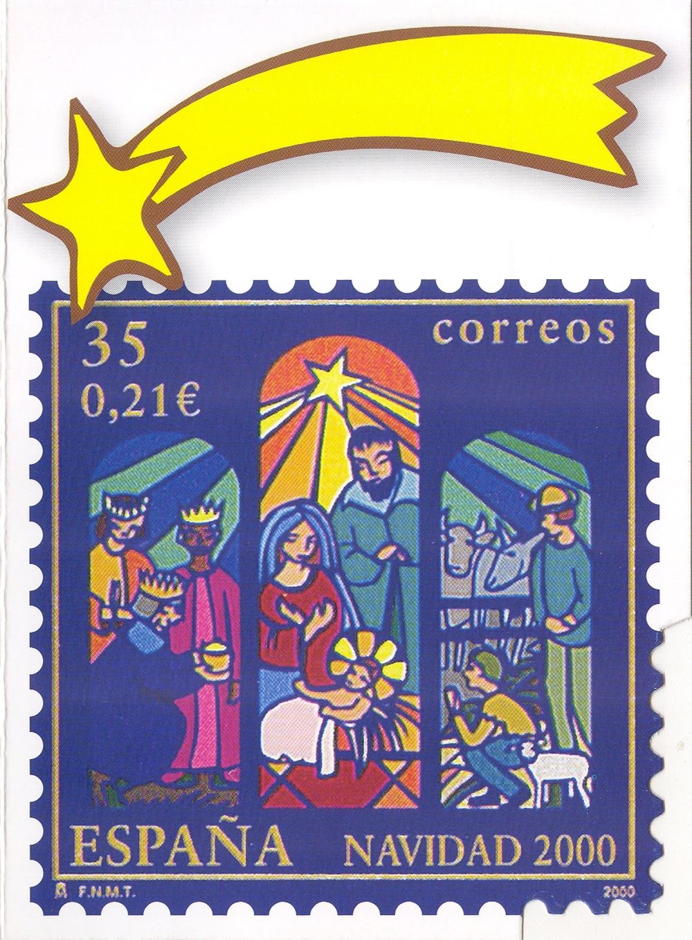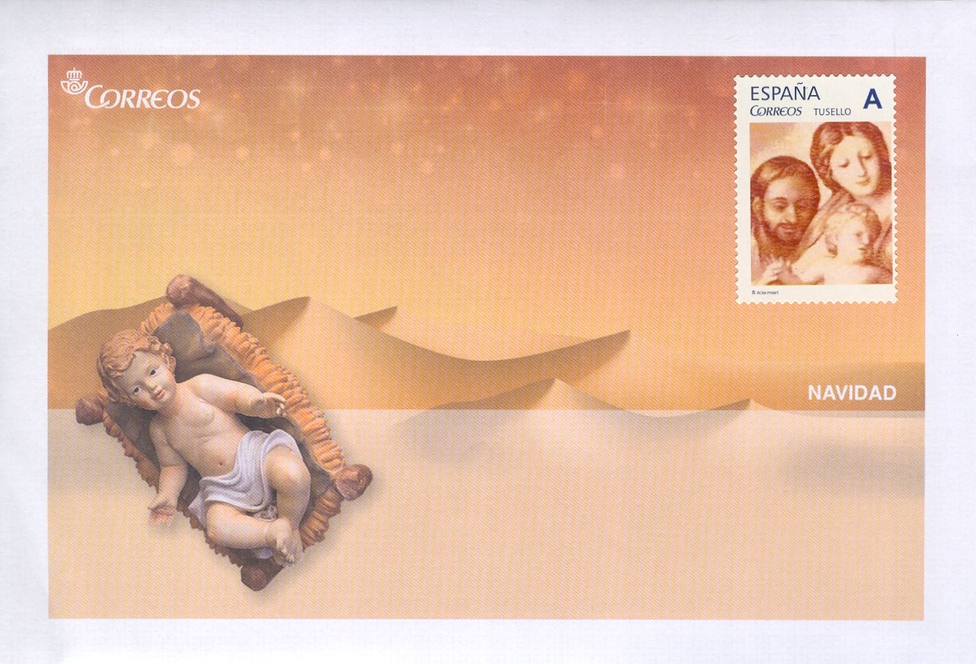 Este sello se ilustra con una vidriera que representa una escena típica del nacimiento del Niño Jesús, con la Virgen María y San José. Se acompaña con el mensaje Feliz Navidad escrito en las cuatro lenguas oficiales que se hablan en España. En la impresión del sello se ha añadido cold foil para acentuar el colorido y dar mayor profundidad a la imagen de la vidriera.