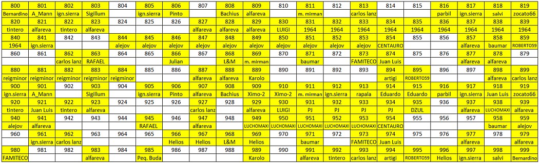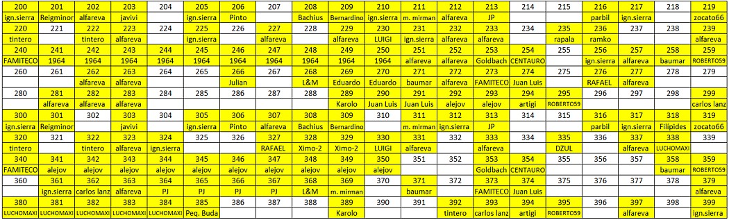 ME SE ESPERE QUE LOS COMPLETO CON LAS ULTIMAS PETICIONESDZUL escribió:Julián apúntame también el 198 y ya cierras el primer cuadro.