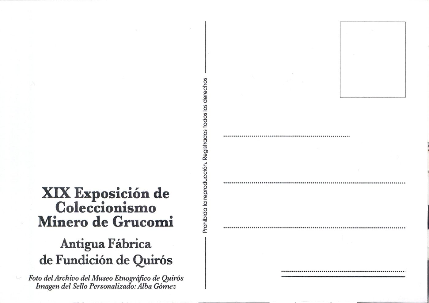 Y ha reproducido en una tarjeta postal una foto de la Antigua Fábrica de Fundición de Quirós, procedetne del Archvio del Museo Etnográfico de Quirós.
