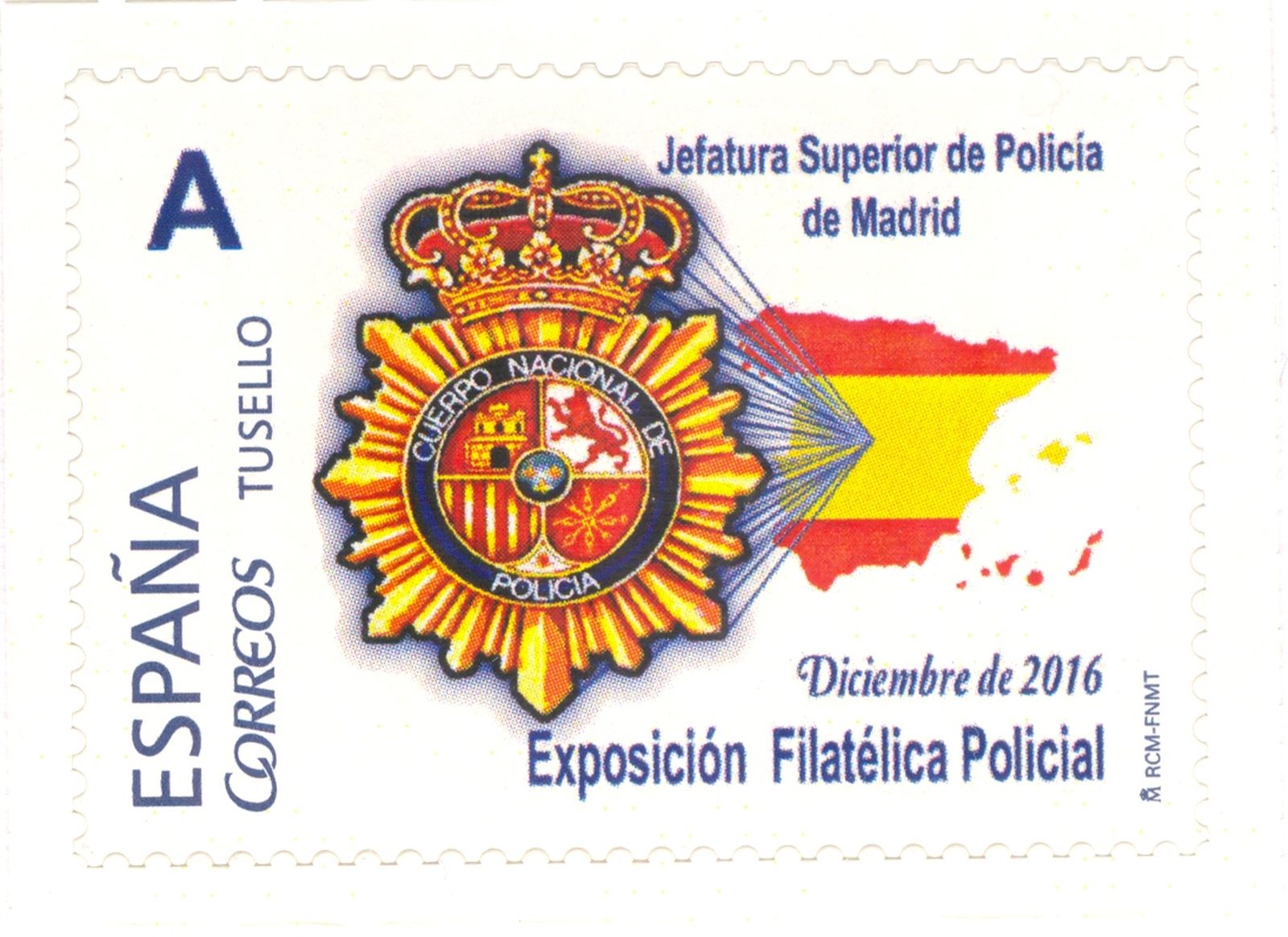 Con ocasión de la celebración, en Madrid, del 22 de diciembre del año 2016 al 5 de enero del año 2017 de la Exposición Filatélica Policial, la Jefatura Superior de Policía de Madrid, emitió dos sellos personalizados.