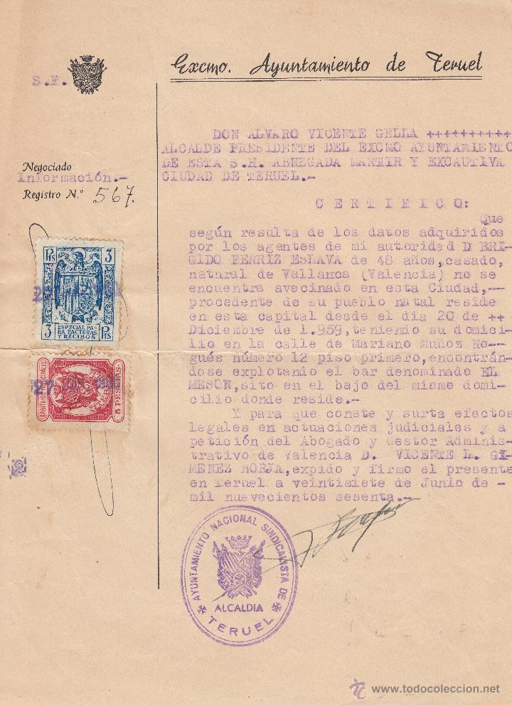 Documento de TERUEL, con un sello de 5 pts, ya catalogado.....año 1960