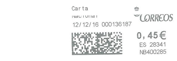 - Máquinas de franquear de la marca Pitney Bowes (gestionadas por la empresa Intimus International Ibérica, S. A.):