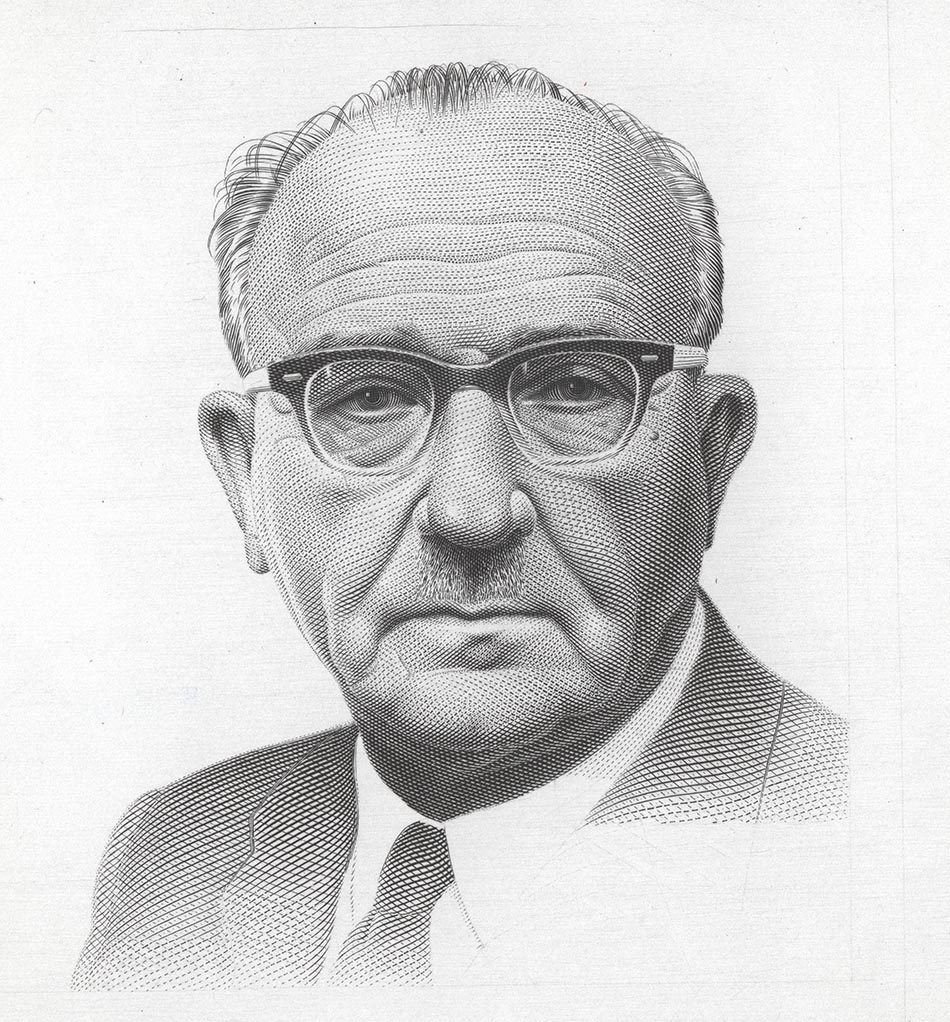 El grabador del sello es G. Minguet, de quien apenas disponemos de información relevante, ni tan siquiera el nombre, sólo la inicial. Sí sabemos que, aparte de realizar algún proyecto filatélico, grabó muchos de los anversos de los billetes de Bélgica durante la segunda mitad del siglo XX. De hecho y en realidad, es autor de los retratos más espectaculares de los tres primeros reyes belgas, especialmente de Leopoldo II, a quien grabó por dos veces en billetes, uno de Bélgica y otro del Congo. En la siguiente entrada exponemos cuatro de estos billetes, dada su categoría ciertamente impresionante.
