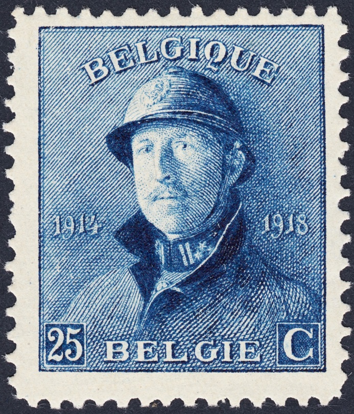 Incorporamos detrás de estos dos sellos, otros tres en los que aparece el rey soldado, Alberto I: dos sellos grabados por Georges Montenez, pertenecientes a las series calcográficas de 1925 (13 valores) y 1929* (4 valores), así como un sello conmemorativo del centenario de su nacimiento emitido en 1975. El diseño y el grabado de esta emisión moderna, impresa en calcografía y huecograbado, corrieron a cargo de Jean Malveaux y Charles Leclercqz.
