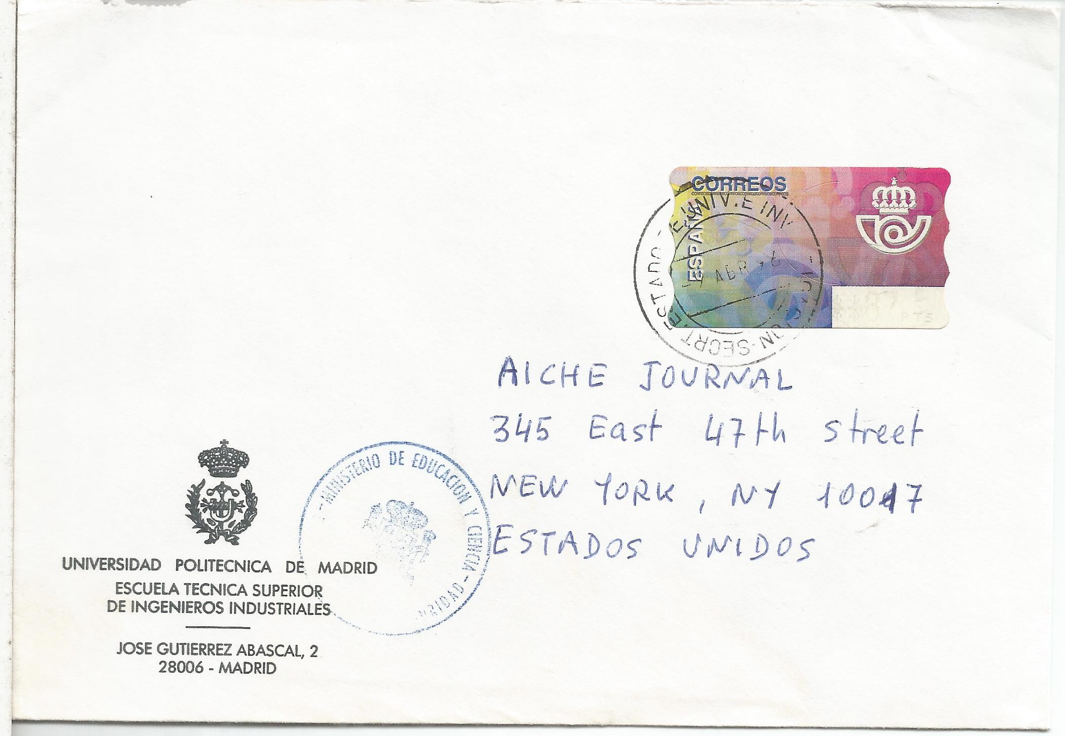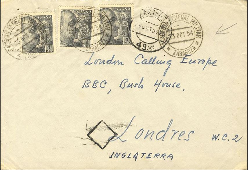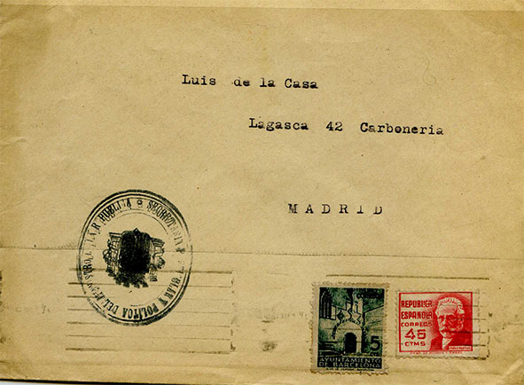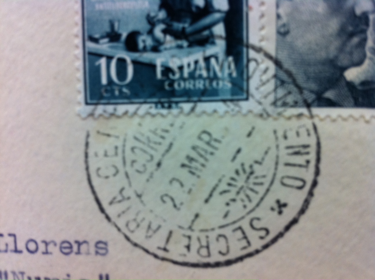- La primera de ellas va correctamente franqueda (con el sello de 45 céntimos) y el tampón se utiliza a modo de remite.