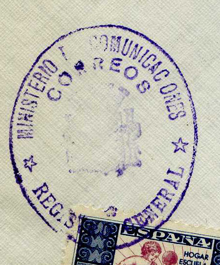 Ministerio de Comunicaciones Correos Registro General. Ovalado 38,5 mm x 31,5 mm