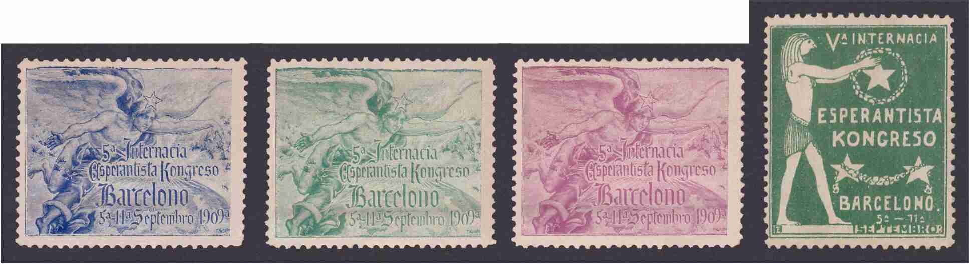 serie completa y otro más del mismo V Congreso Esperantista en Barcelona, acompañados de una postalita de la época.