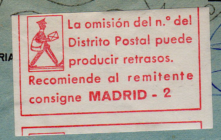 ETIQUETA OMISIÓN OMISION DE DISTRITO POSTAL MADRID 2