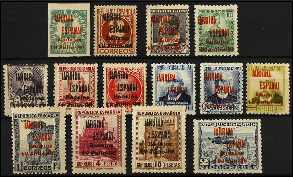 Muestro los que tengo con la sobrecarga ¡ARRIBA ESPAÑA! BADAJOZ 19 DE JULIO 36 (hago esta descripción para futuras búsquedas).