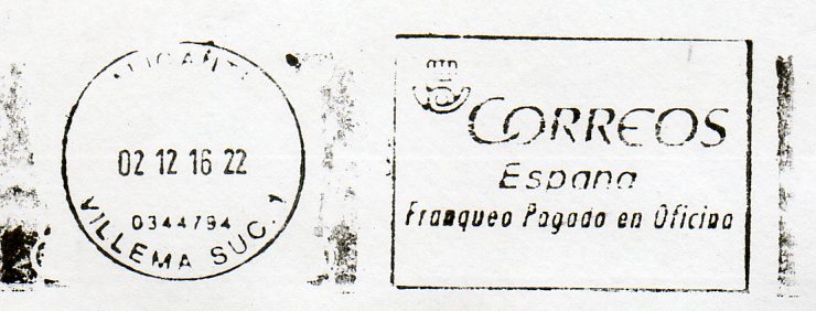 FPO AF-109 ALICANTE/VILLEMA SUC 1 / 0344794 / 02-12-16