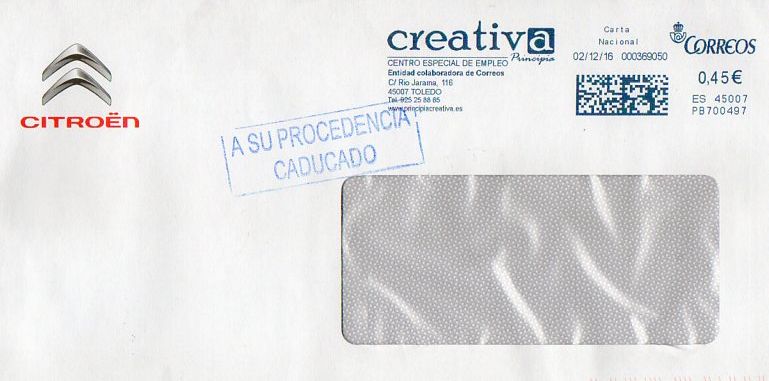 Cambio de dirección, relación con Correos y añade en el logo una página Web. El nº de teléfono sigue siendo el mismo...