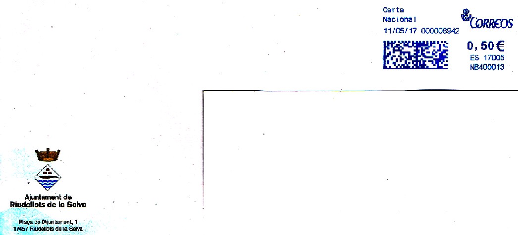 NB400013 Ayuntamiento de Riudellots de la Selva (código postal de entrega en Girona)